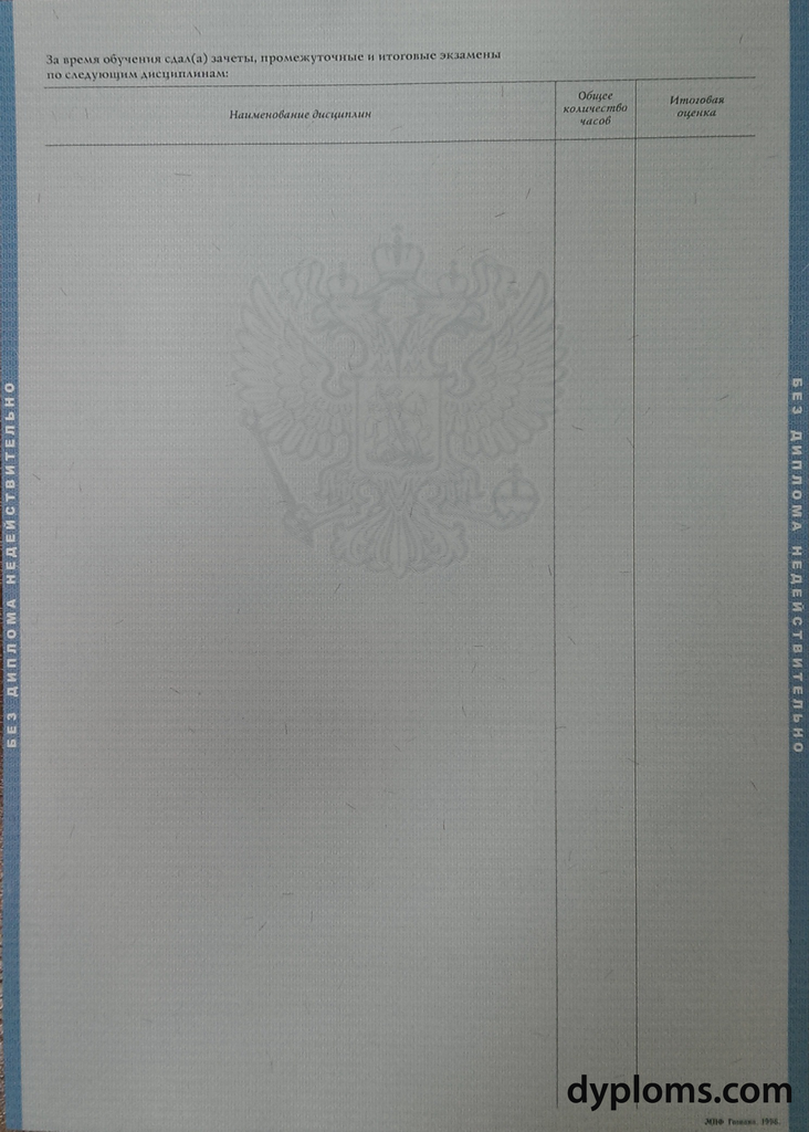 - Диплом актуального образца с государственными символами и защитными элементами.